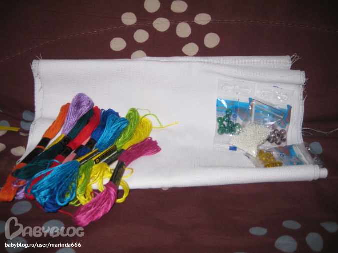 А это для меня, я просто обалдела, огромный отрез канвы и красывейшие оттенки мулине. Я уже выбрала себе картинку и буду вышивать. Чешский бисер-это моя мечта, он такой красивый что жалко использовать, я на него пол вечера любовалась.