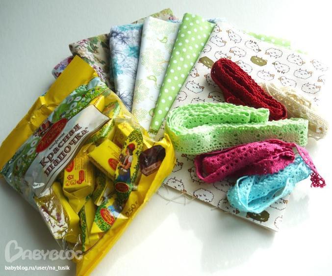 еще несколько видов тканьки, чудесное кружево разных цветов ну и сладости...куда же без них)))