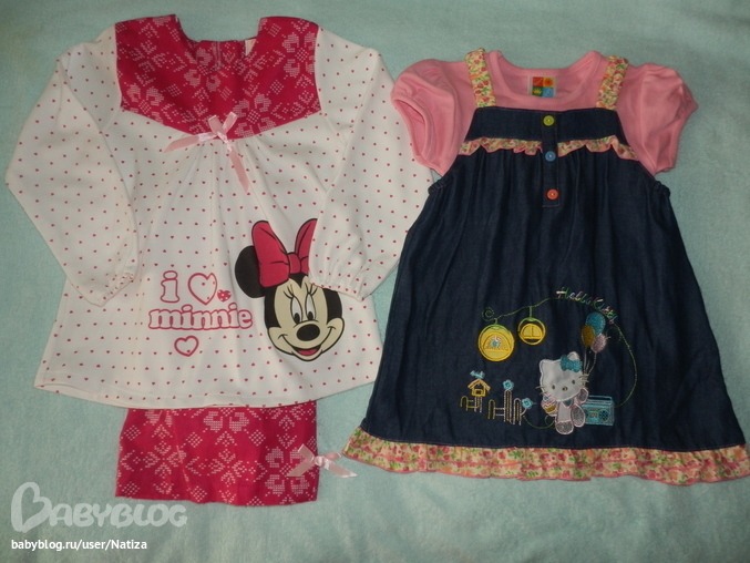 Красивости для моих дочек- модниц: для старшей туничка и штанишки, для младшей джинсовый сарафан с футболочкой.