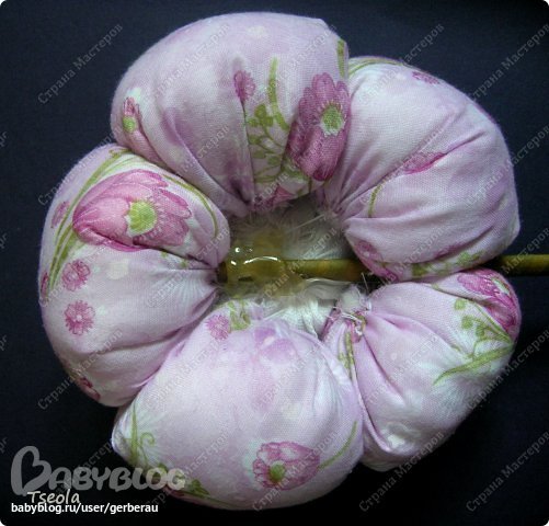 Лепестки собрать вместе с помощью иголки с ниткой.