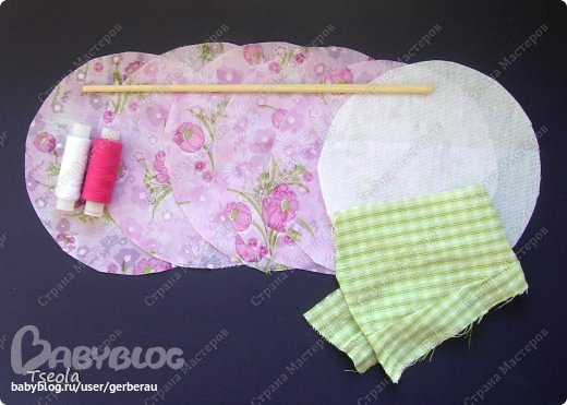 - ткань для лепестков и для серединки + синтепон для набивки