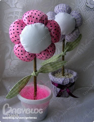 Теперь про листочки. Не знала, как их прикрепить к стеблю, поэтому решила просто завязать. Первые листочки я делала из ткани: простая выкройка, прострочить с изнанки, вывернуть, отутюжить и снова прострочить.