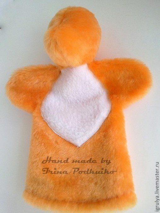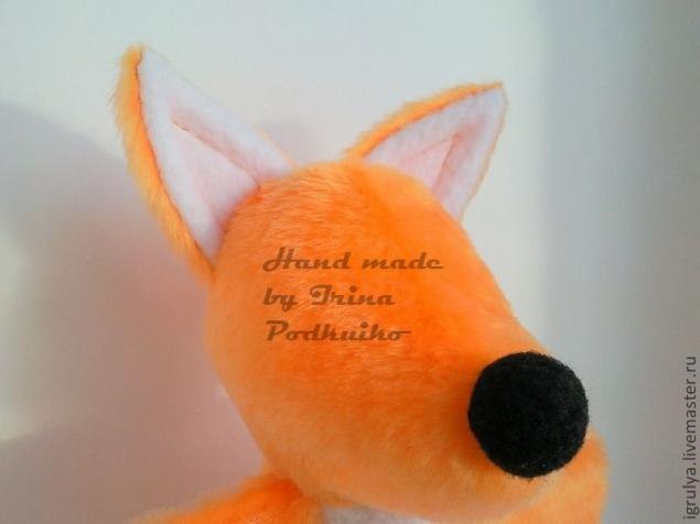 Надеваем туловище на руку (так удобнее будет пришивать), голову лисы надеваем на шею до конца и пришиваем потайным швом по кругу. Я делаю два круга для прочности, потом обратным стежком прячу нитку в шов головы.