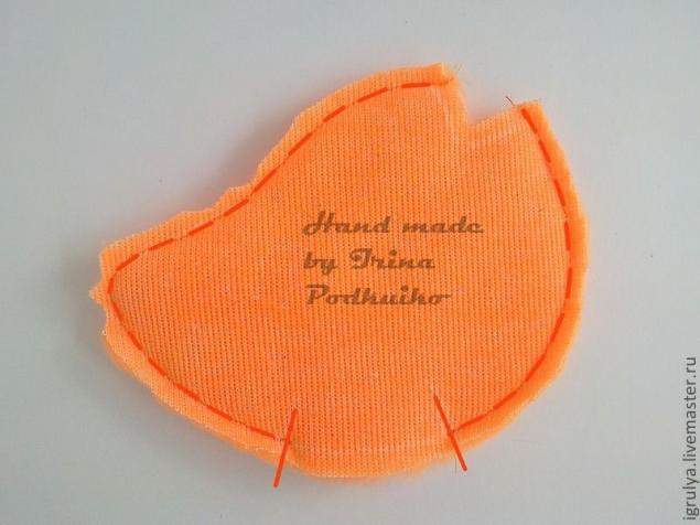Снизу их скалываем булавками, подгибаем край внутрь на 1 см и прошиваем зигзагом.Наше туловище для лисы готово!
