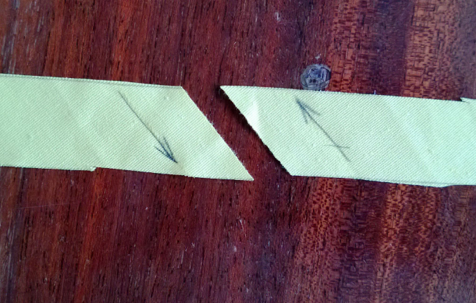Если вам необходимо соединить две бейки, то шов должен проходить по долевой нити.