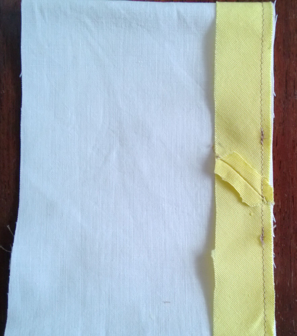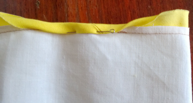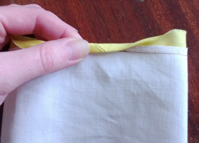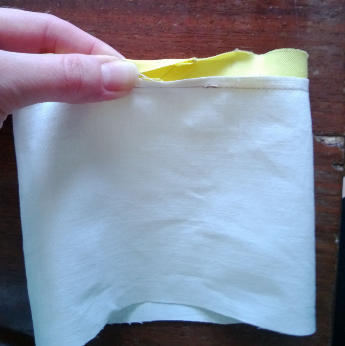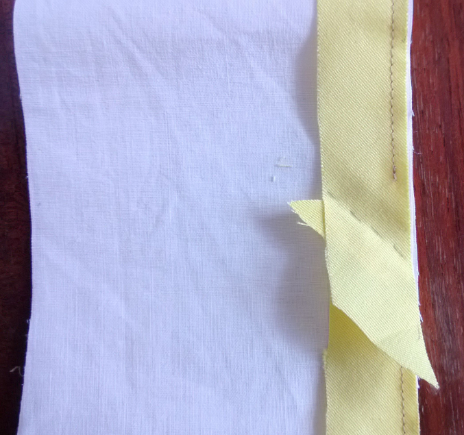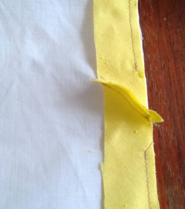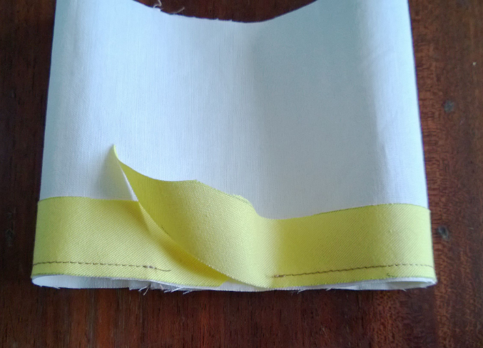 Затем подгибаем срезы бейки и заканчиваем обработку среза горловины. У меня получилось не очень аккуратно, но это и не важно в данном случае. У вас получится намного лучше!