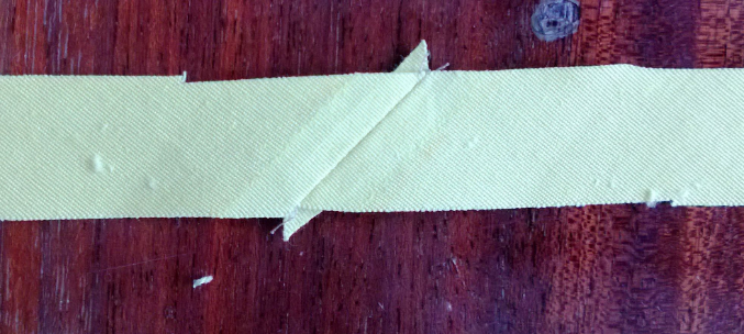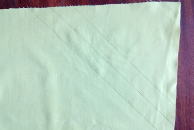 Если у вас нет под рукой готовой бейки ее можно сделать самой. Бейка выкраивается по диагонали, шириной 2,5-3см.