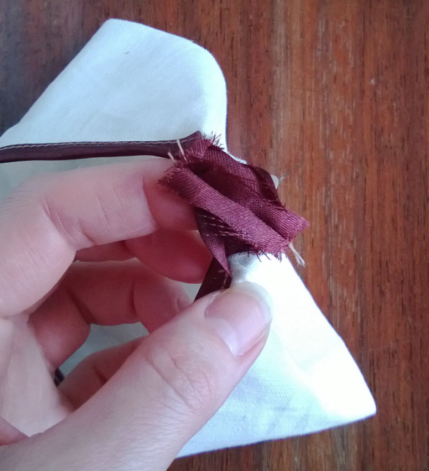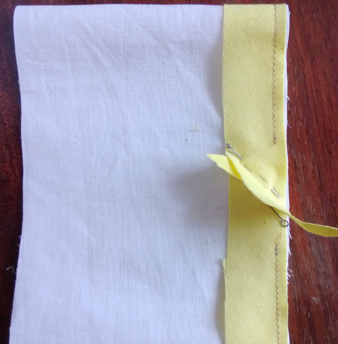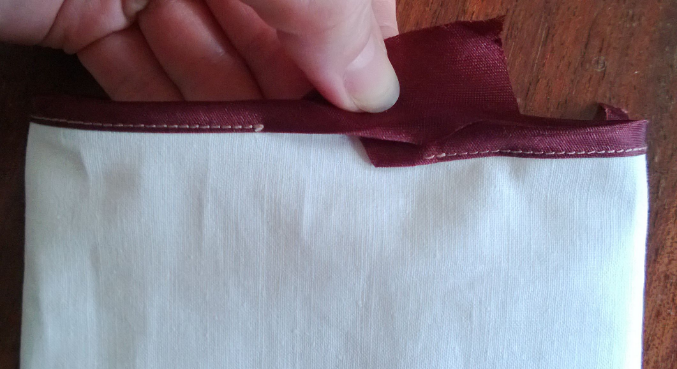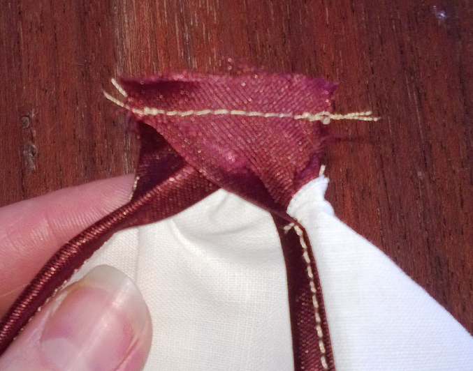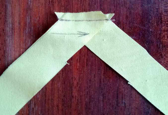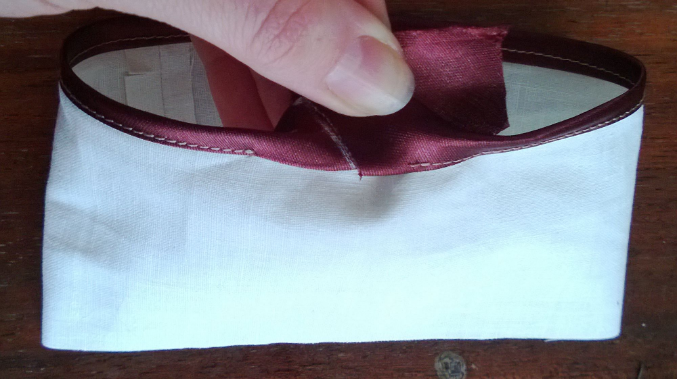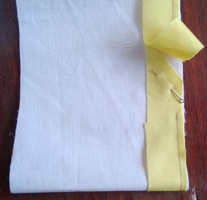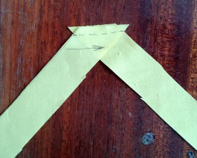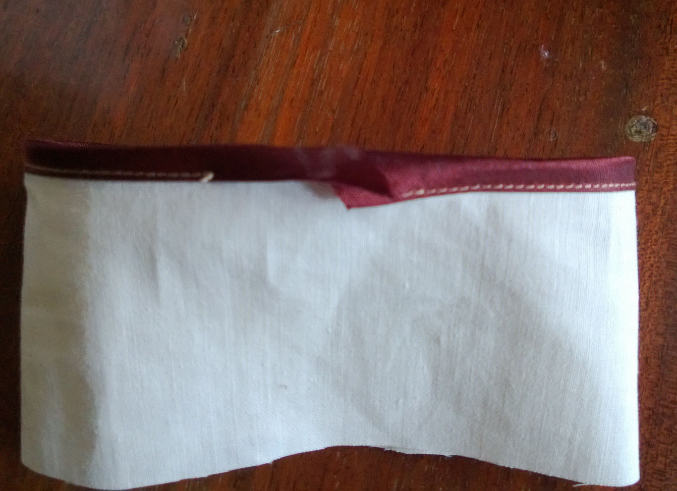 Концы бейки можно приутюжить, чтоб удобней было шить. Сложить так же , как и в первом варианте и проложить строчку.