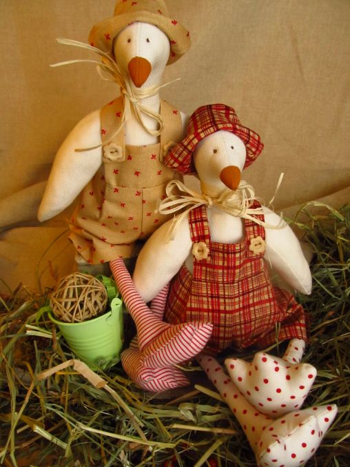 -Текстильные игрушкиВ продолжение птичьей темы сшились гуси - веселые лапки.