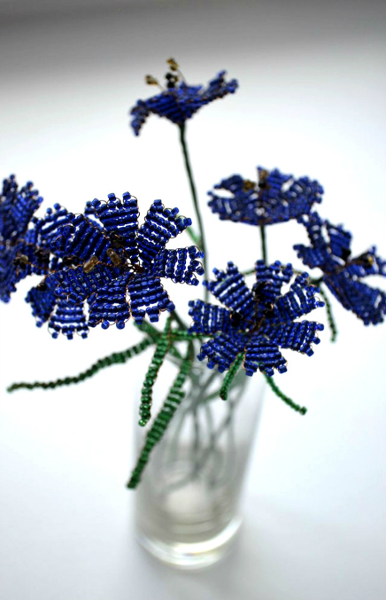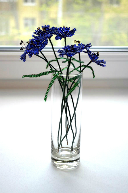 А это гвоздь программы!!! Вазочка и васильки из бисера. Смотрятся просто офигенно!!!!!!!