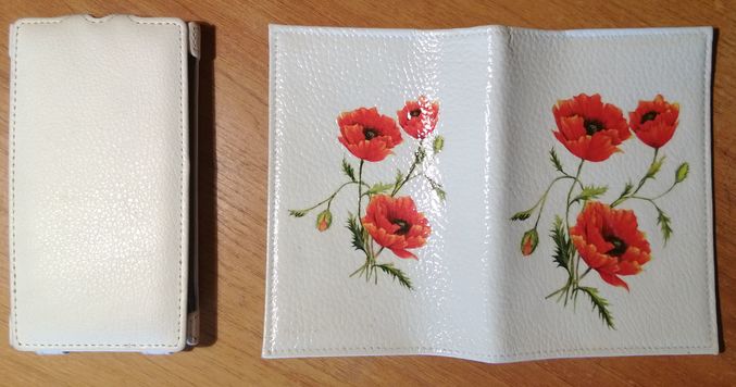 И я решила сделать комплект, обложка для паспорта+ чехол для телефона ( он у меня белый, только маков не хватает) Алла прислала мне маки, спасибочки, моя хорошая))))