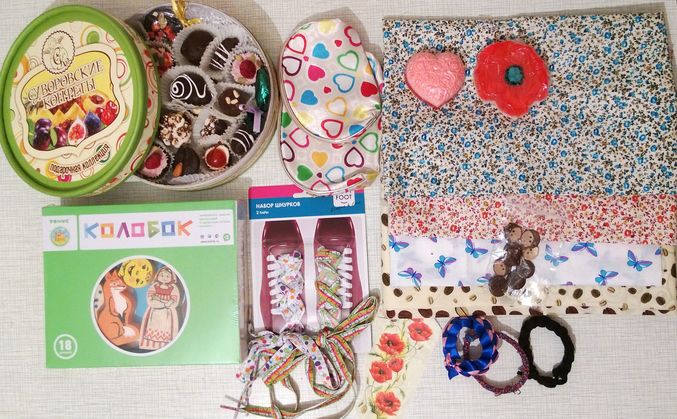 Сонечке набор косметичек и браслетики, сплетенные Алленой дочкой Викой. А еще клевые шнурки на любую погоду))))