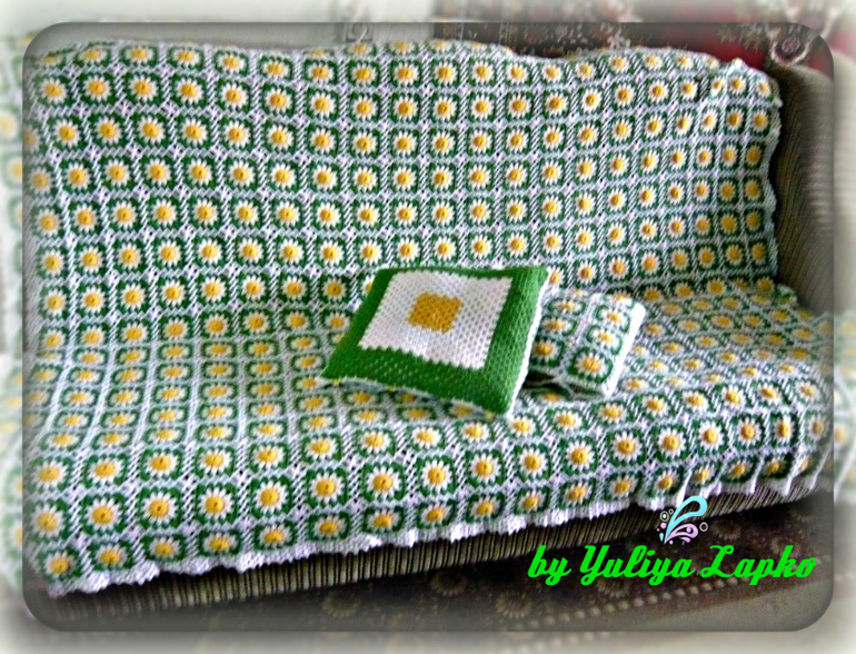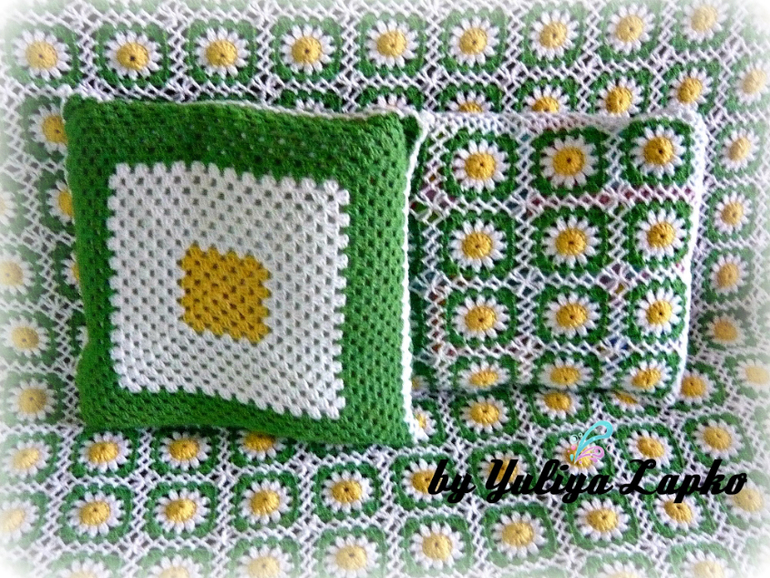 Плед "Ромашковое поле", размер 160х190 см. И два чехла на подушки размером 40х40 см.