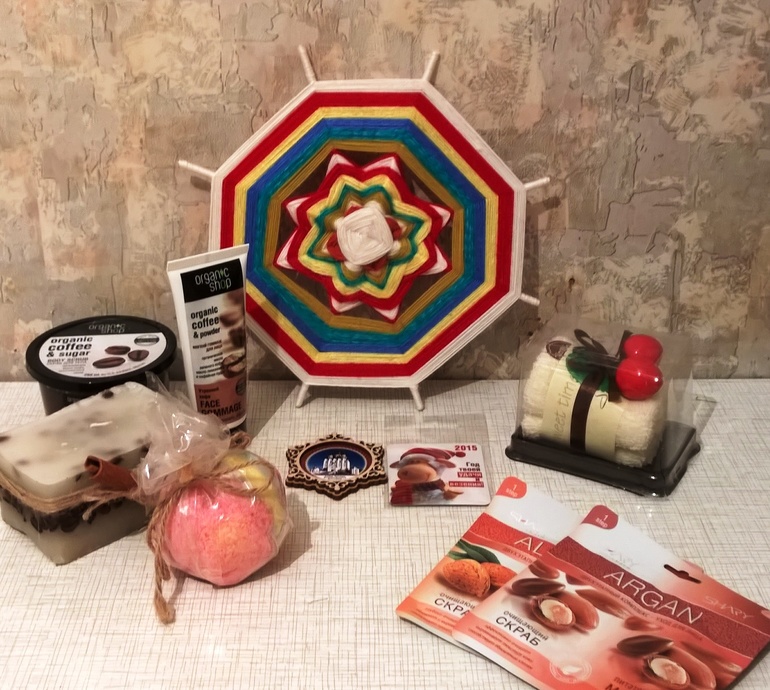 Ну и на конец, мои гостинцы, ах, как я это дело люблю и уважаю.....Самое главное и невероятное, что-то за гранью....МАНДАЛА, я вообще только недавно узнала что это такое и с чем ее едят и вот тут же мне ее захотелось..... жду инструкцию по применению)))) Скрабики.... это что-то с чем-то, а главное, ТАК вовремя, я в шоке, у меня ВСЕ позаканчивалось и я собиралась уже заказывать и тут ...БАЦ, посылка! А свечка какая роскошная с кофе и корицей, кстати, корицей вся посылка пропахла, очень праздничный аромат , тонизирует и бодрит)))))) Масочки...тоже люблю.... Полотенчико очень милое. Бомбочка для ванны, не пробовала еще такие штуки, нужно срочно восполнить пробел. И вообще все очень красиво упаковано, уложено....сразу видно , что человек старался, вкладывал душу , искал подарки не абы как , а продуманно. Мне очень импонирует, когда так серьезно подходят к делу....Спасибо от всего сердца, очень ты нас порадовала, наша волшебная фея.....
