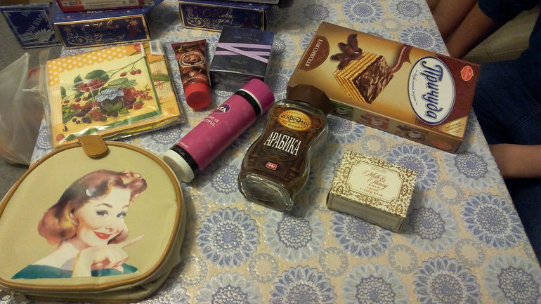Здесь много дамских приятностей))) Муж забрал кофе,тортик)))