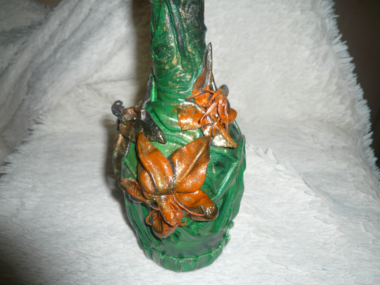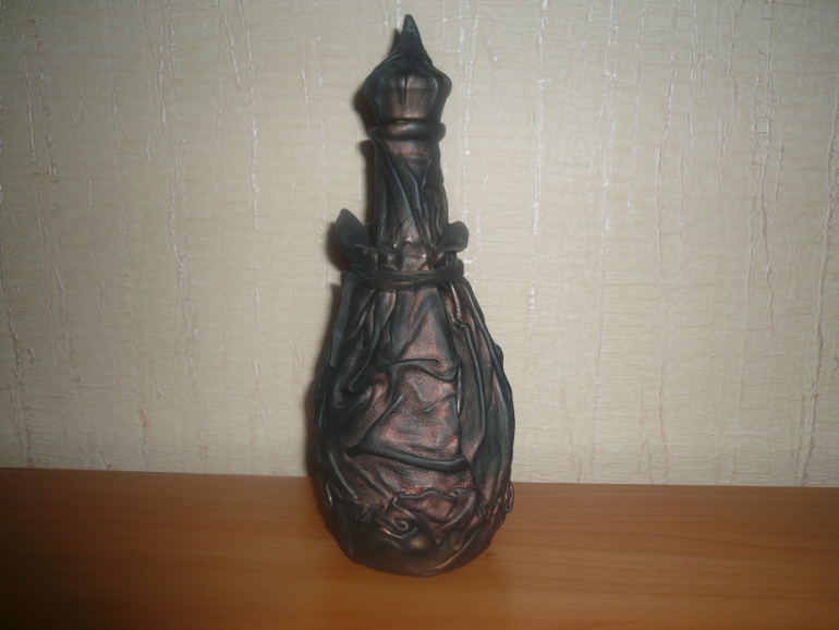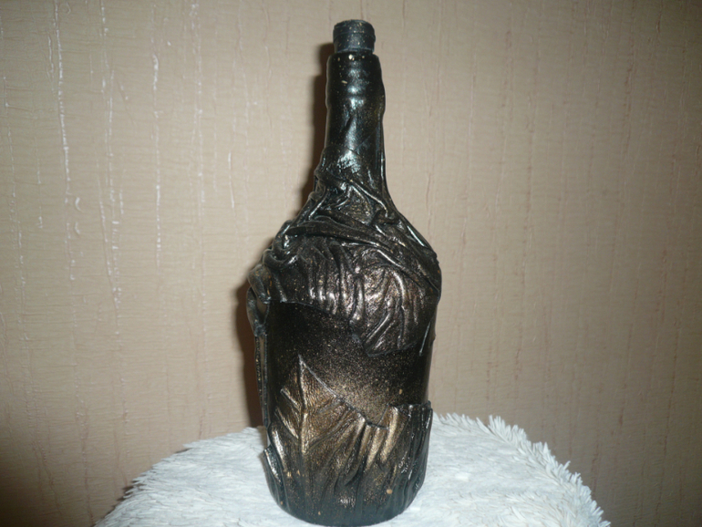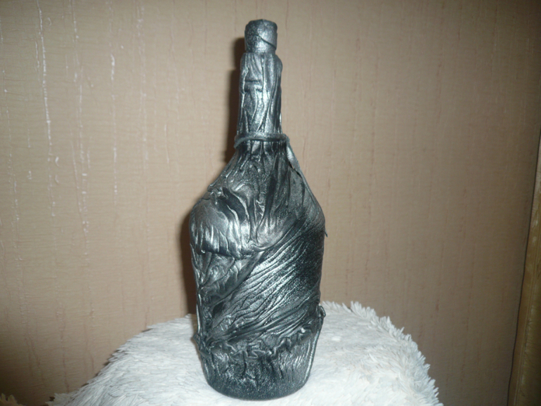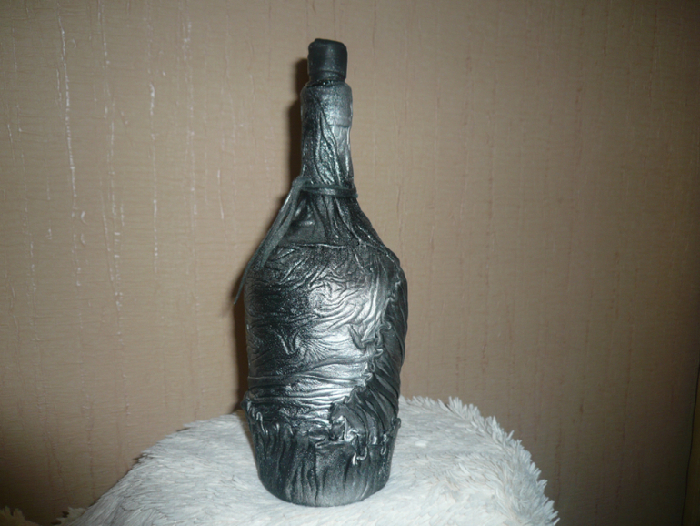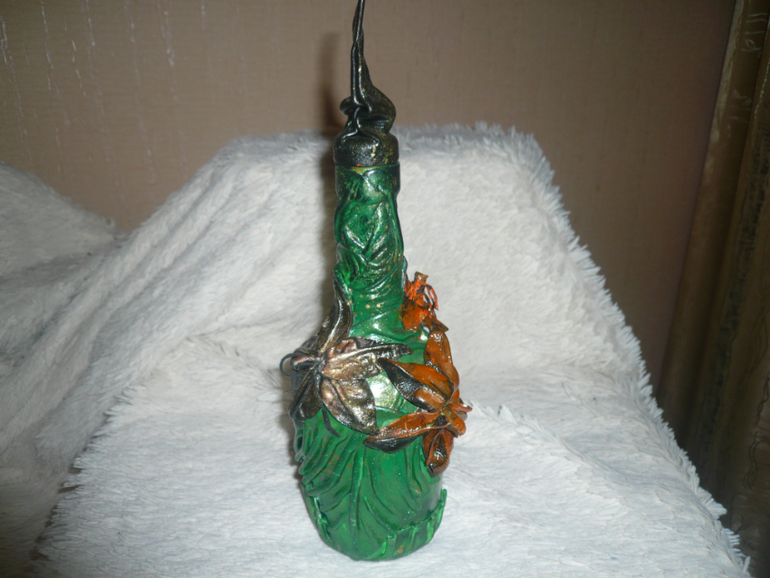 нет кожзам для работы не пригоден....как то он не не на что не ложиться, а если его лаком покрыть, то лак его съест. но попробуйте вдруг выйдет. А бутылки покрашены краской из балонов чем графисты работают, потом лак.