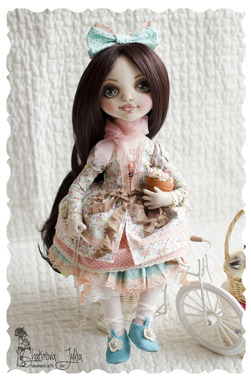 Магазинчик (продажа своих работ)Куколка Эмили выполнена в сложной технике,личико объемное,ручки сгибаются,пальчики тоже.Сидит красиво,свесив ножки.Стоит с помощью подставки или с опорой.Одежда выполнена из натуральных материалов,состоит из платья.подъюбника,панталончиков,снимается полностью весь наряд.Шикарные волосы из качественного канекалонаможно расчесывать и заплетать.Туфельки тоже ручной работы,из искусственной замши с подкладкой.В руках у красавицы горшочек с розами и серебристый кулон на цепочке.Подставка входит в комплект.Больше фото в моем дневнике