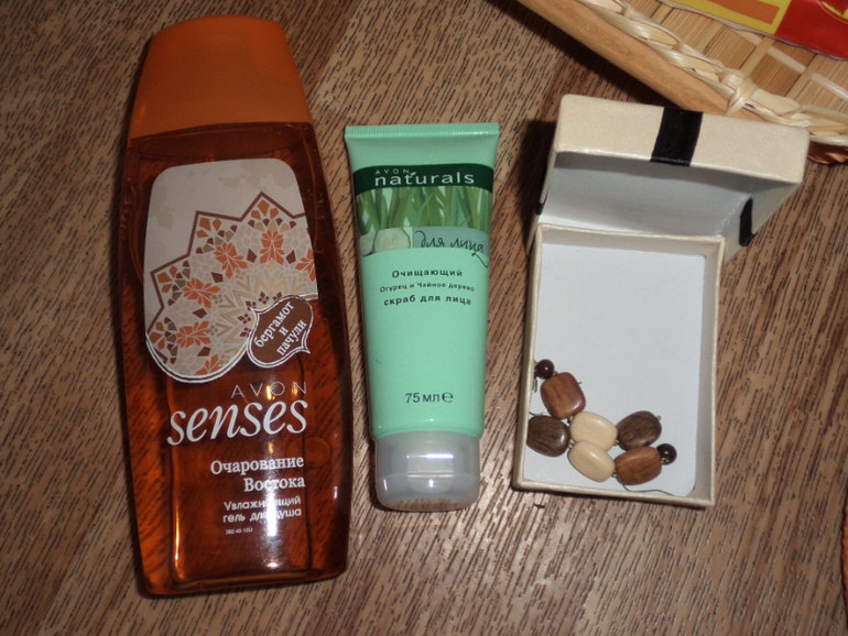 Тут Оля тоже попала в самую точку. Гель для душа у меня вот вот кончиться .... и скраб для лица на пару разиков остался . Ну вот сережки ... ушки не проколоты ... но мне так понравились камушки ... что я думаю я их разберу на кулончики....