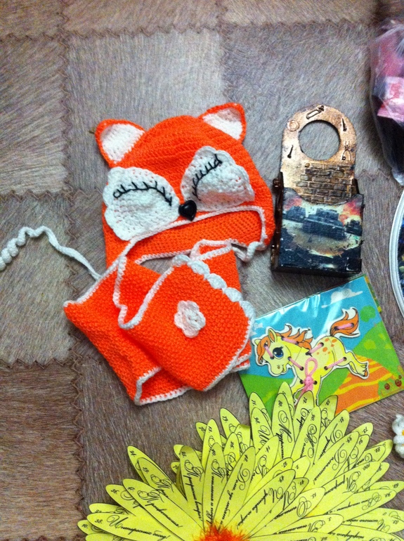 классный коник для сыночка.ходит с ним играет.понравился ему.для дочи чудесная шапочка с шарфиком лисичка.нарядимся осенью.а какая ключница!!!!!!!я в неё просто влюбилась.и подставочки чудесные.от Сына тоже спасибо.танки это наше всё.а сколько вкусняшек.до сих пор чай пьём. огромное спасибо Танюш.обмен просто замечательный