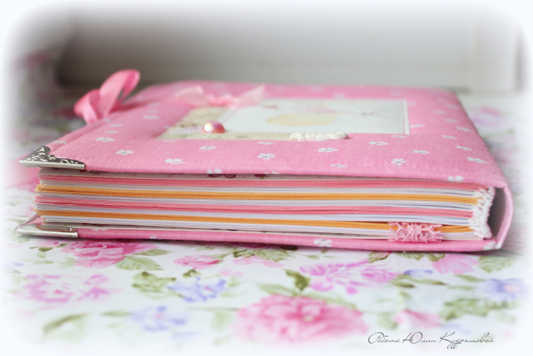 - Блокнот формата А5 на завязках. Внутри 256 пустых (нелинованных и не штампованных) страниц 3х оттенков - белый, нежно розовый и персиковый. Имеется закладка. Блокнотик может использоваться как ежедневник или дневник будущей мамы, для важных записей о малышке, для занесения важных дат, сведений о прикорме и т.п.