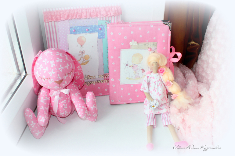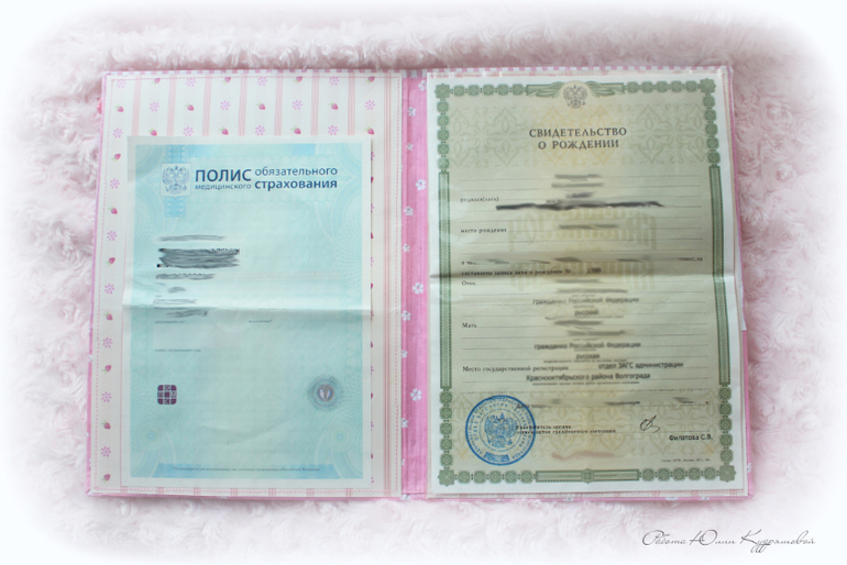 - Папка для первых документов малышки. Размер 26*19,5 см. Внутри папочки имеется вкладыш для свидетельства о рождении, а также кармашек для дополнительных документов, рецептов и назначений. Минимальный декор для удобного ношения в сумке.