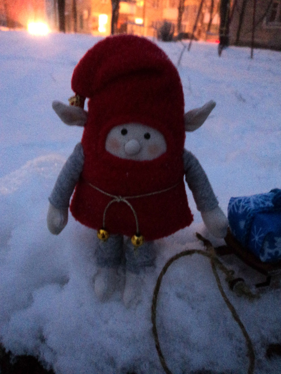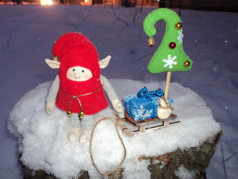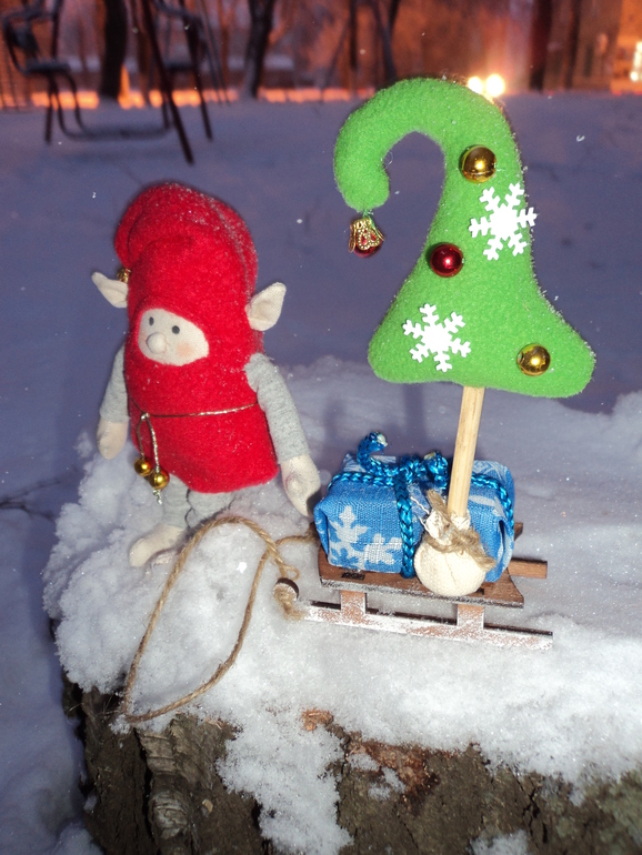 -Текстильные игрушкиНачалось всё с саночек. Увидев их, такие миниатюрные, мне сразу захотелось гномика к ним сделать.