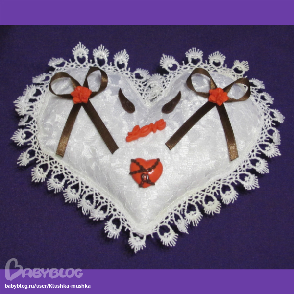 Я даже не ожидала, что так получится. В работе использованы различные ткани, кружево, холодный фарфор и акриловые краски.