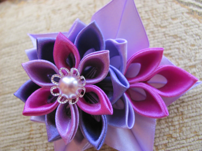 Цветы из тканиПока нахожусь на отдыхе по ночам иногда делаю канзашки