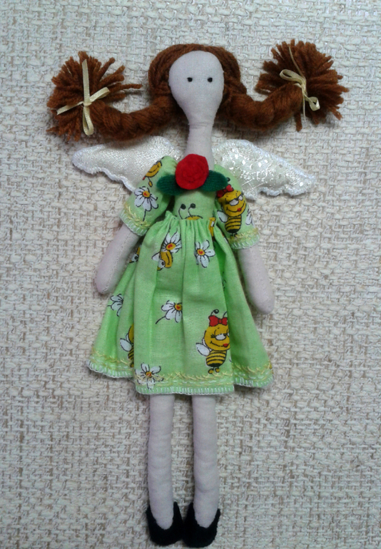 Куколка по выкройке ФЕЕЧКА-КОФЕЕЧКА (из книги, только там была дана выкройка совсем символическая, поэтому пришлось свою плохонькую сделать).Брошь-роза и туфельки -из фетра. Ее я сделала без припусков на швы и она получилась 25 см.Если сделать припуски, то будет немного побольше. прошу прощения за выкройку- делала наспех для себя.