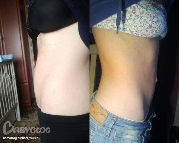 слева будут фото через 6 месяцев после родов, а справа через год