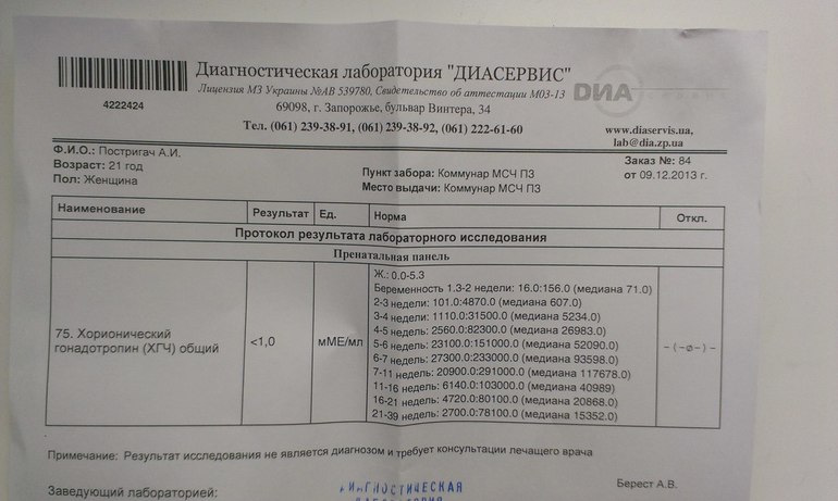 Спасибо,вам огромное за поддержку.....месячные так и не пришли,уже 6й день задержки....очень страшно....сегодня забираю,свой результат ХГЧ в 12.15...надеюсь там ничего нет...хочу,чтобы он был отрицательным!!!!! Чем ближе подходит время,тем ужасней! Просто я дура вчера бы узнала...меня спросили...оставте свою э-почту...та я говорю зачем...так бы еще вчера знала...Эх...лошара я.(((((((((((((((