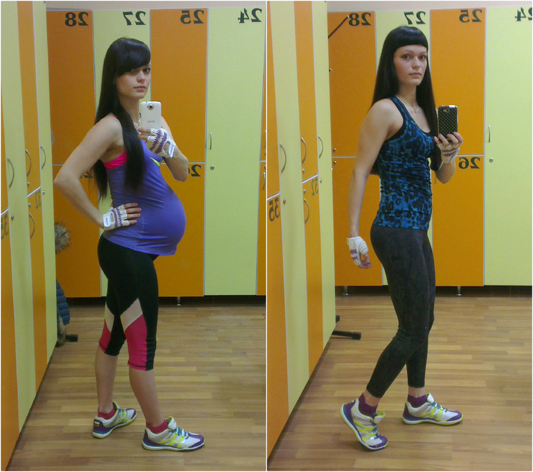 В зал я отправилась ровно через неделю после родов, сначала очень болела спина из-за ослабших мышц живота. На сегодняшний день вернулись очертания ягодиц, плеч и косые мышцы живота. Оставшаяся подкожная апельсиновая корка подвергается ежедневным массажам, скрабам и кремам. Вес отягощений планомерно увеличивается, я уже в строю на уровне лучших моих подопечных.