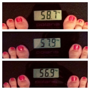 За первую недельку ушли еще 2,5 кг и всеее, вес замер на отметке 59,6 и ни в какую не двигался дальше. Ни ограничение сладкого, мучного и углеводного по вечерам. Ни круглосуточное висение на груди дочери. Ничего его не брало!