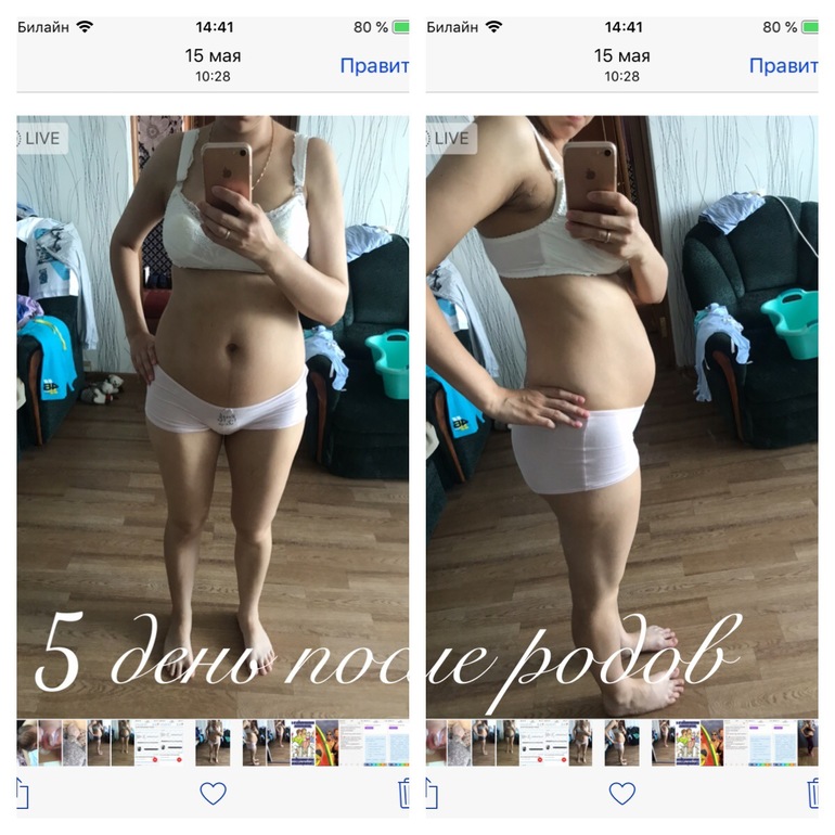 А Вы не кормите? Совершенно не видно, что рожали, только пигментная полоска на животике пока выдает