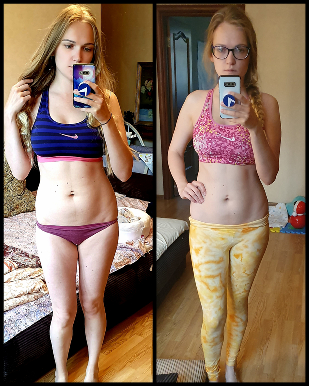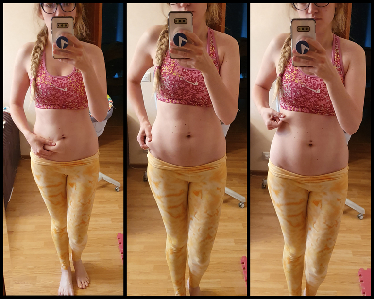 Радует, чоо рыхлость уходит, кожа стала выглядеть приличнее и тонус мышц все таки возвращается... но думала, что скину больше =/