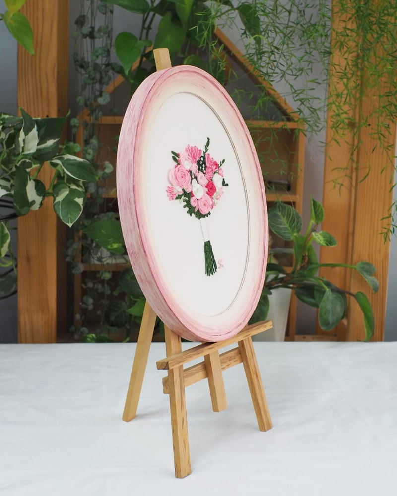 С мая месяца отправила вышивку на оформление, и вот она наша красавица. Получилось очень нежно, как и хотела немного в ретро стиле. Дочка, впервые вышивала в таком стиле, но это очень красиво.