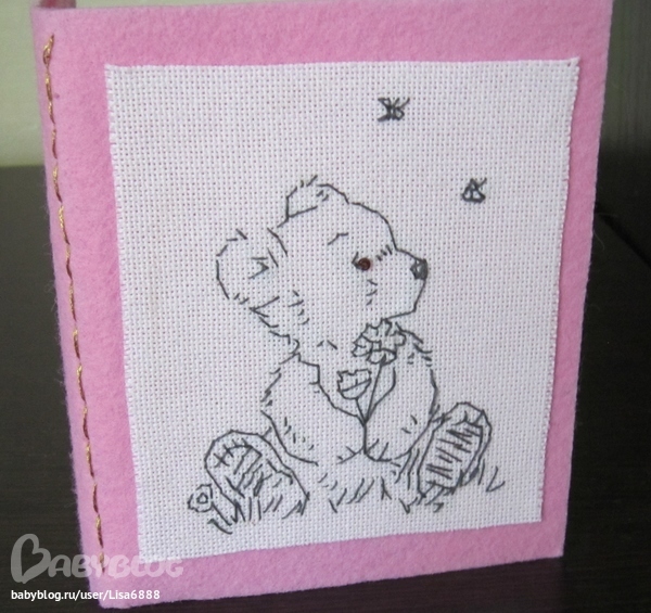 Решила показать свои две маленькие работки))) первая это игольница. Мишка к ней вышит давно уже и вот наконец то на меня сверху снизошло и я сляпала ее)) Кривовато конечного получилось, но как говориться лиха беды начало))) Еще решила следующий раз внутрь вставлять фетр потоньше, а то в такой толстый не очень удобно иголки вставлять