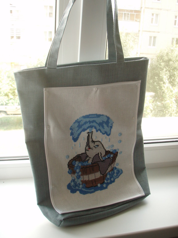 Оформила Слоником-Чистюлей сумку, в которой собираюсь держать свой стратегический запас мыла-шампуней и т.п.