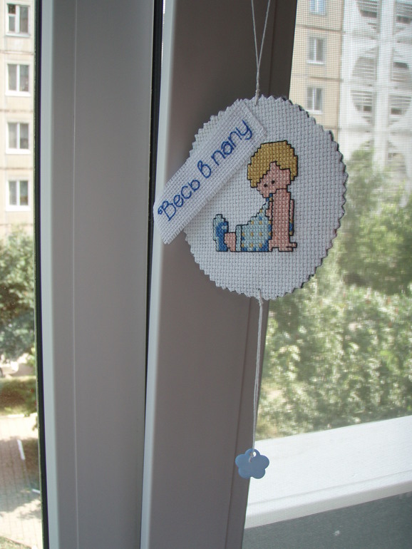 ну и мой отчетик- дошила я таки метрику для сыночка подружки. надо теперь рамку купить)