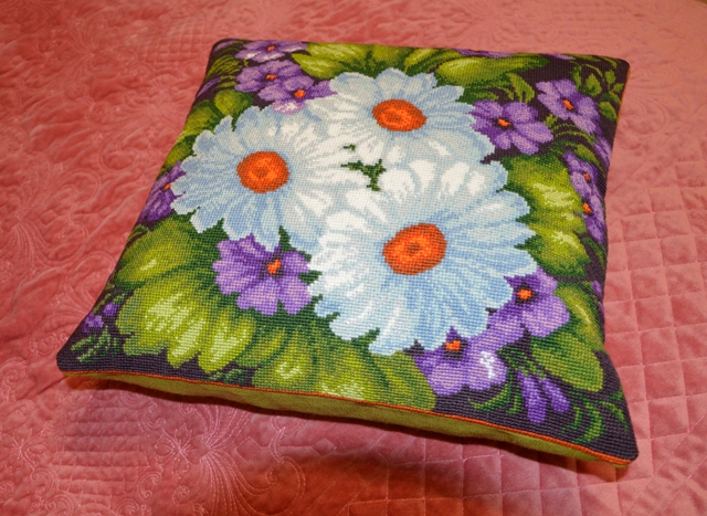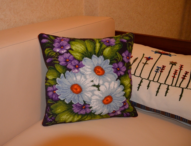 Вышивка крестомЭто подушка "Матренин Посад". Вышивала первый раз печатный крест, очень намучалась, т.к. рисунок был со смещением, плюс не хватило ниток двух цветов, один из них цвет фона, уж точно не перепутаешь :) Ниточки подобрала, домучивала подушку очень долго, устала от неё, но результат всё равно порадовал .... Спасибо маме за "сбор" наволочки, без её помощи не получилось бы такого "чуда"!!! Изнанку укрепила дублерином, задник наволочки покупала готовый, стирала фериком - рисунок не полинял :) И фото на Ваш строгий суд, дорогие Дамы: