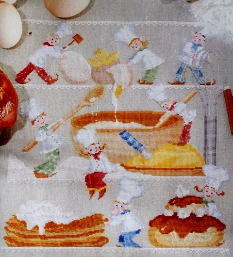 И еще одно панно для кухни - вот такие проворные кондитеры. Сама очень люблю повозиться на кухне с выпечкой, так что они мне будут помогать и поднимать настроение ))) Хочу вышить их в самое ближайшее время....