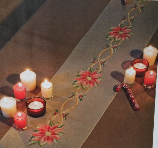 Вообще это настольная дорожка, но вот не знаю, нужна ли мне эта дорожка... А пуансеттии на ней очень уж приглянулись! Буду думать куда их можно определить)))