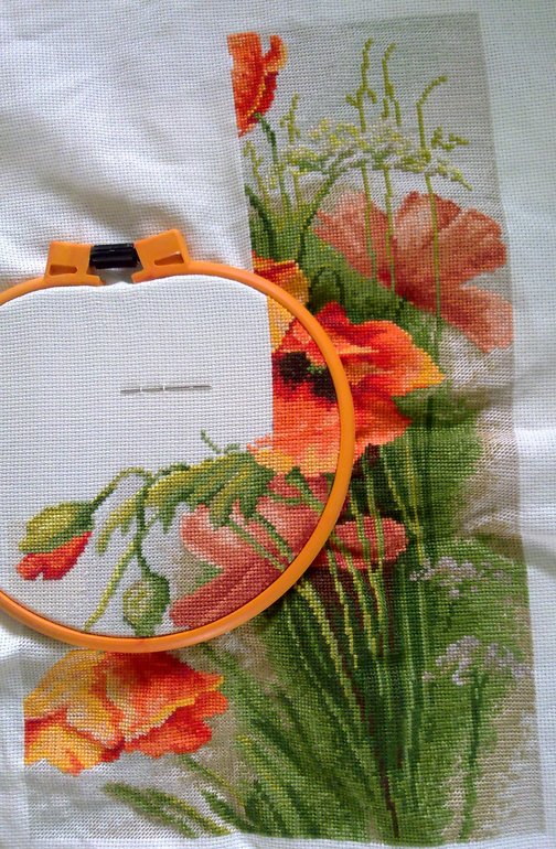 Даже не верится, что уже экватор((( Я что-то прям расстроилась. так хотела за ВД вышить две картины, но вот со своими небольшимим маками уже столько времени капаюсь((( Хотя процесс меня не напрягает, а только радует. И не смотря на то, что в закромах лежит Дим, меня что-то к нему даже не сильно тянет.