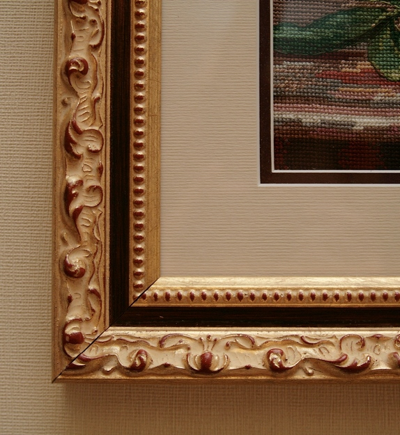 Вот она оформленная! На оформлении решила не экономить, все таки эта вышивка стоит того - деревянный багет, двойное паспорту... Как получилось - лично мне нравится! Картина уже заняла свое почетное место на стене.