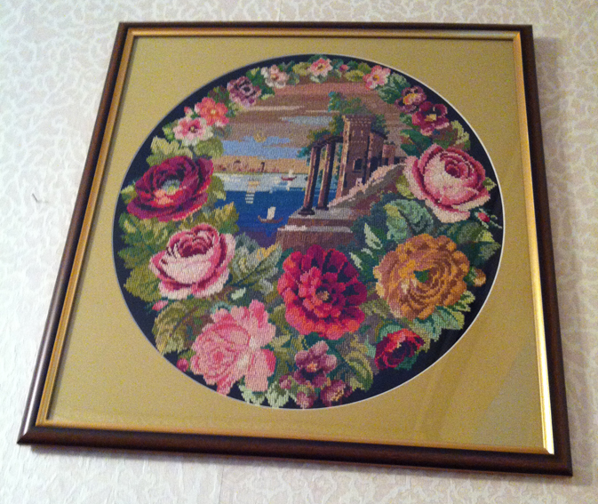 Ретро-вышивкаЛет 50 тому назад бабушка вышила эту картину, она на черной ткани, и висела у нее в обычной рамке, а недавно она решила ее переоформить, с паспарту и новой рамой и вот что получилось (без бликов не получилось сфоткать)