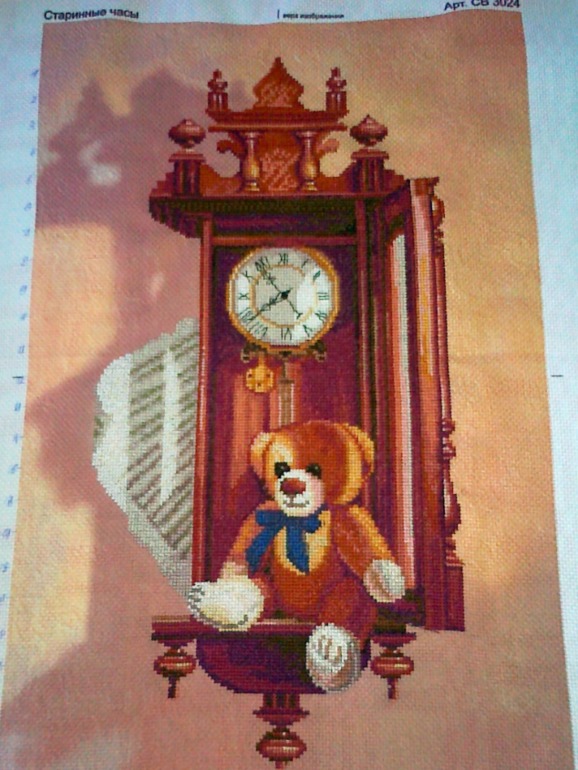 Вышивка крестомПо давней просьбе сына визуализировала его мечту о больших старинных часах на стене.