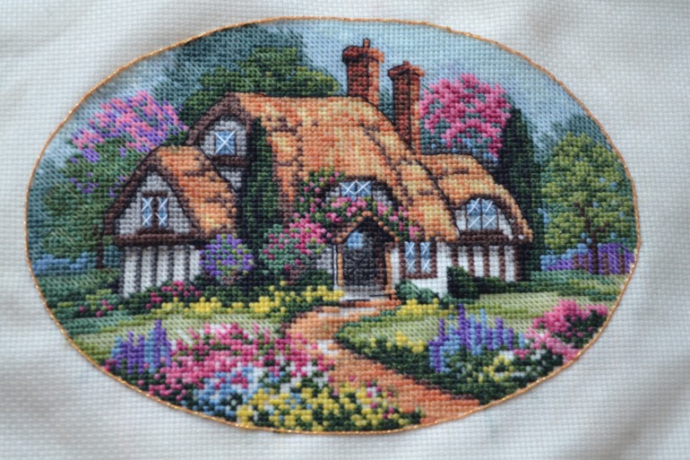 Спасибо)) что оценила мое творчество)) жалко тут нет фотки после багетки))) Я так подсела на это дело наборов накупила тучу))) А примета такова. Вышей домик и появится свое жилье)) так что попробуй, реально работает))