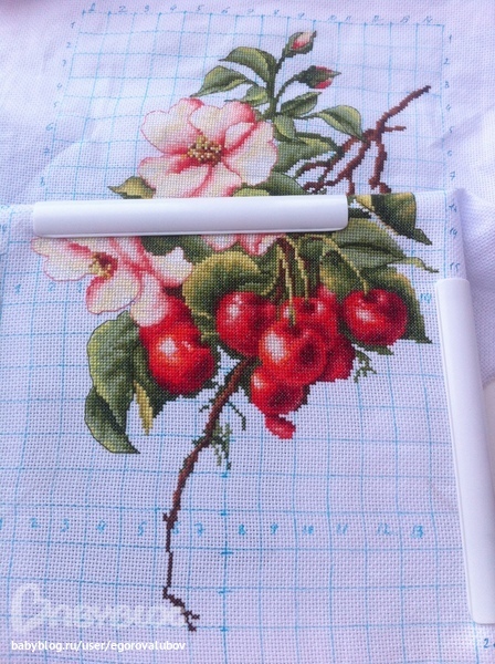 а вишенки эти одно удовольствие вышивать)) так ждала всю вышивку когда же до них доберусь)