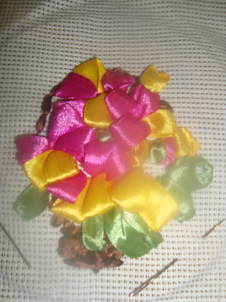 красиво) Я еще не пробовала вышивать лентами по канве. Небольшой советик: протрите линзу объектива фотоаппарата (можно спиртом с ватной палочкой), тогда Вашу красоту будет еще лучше видно:)