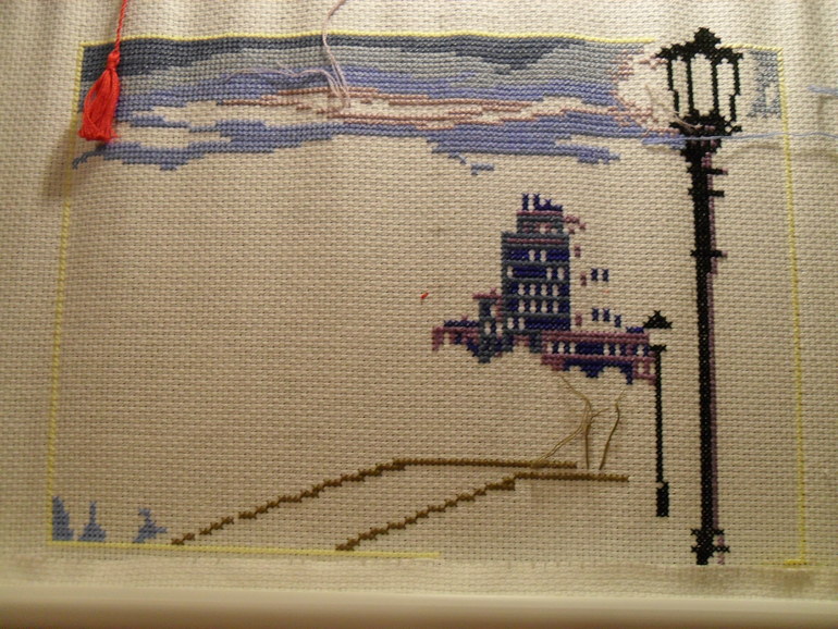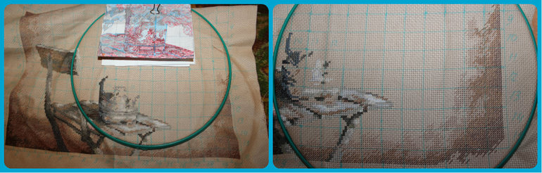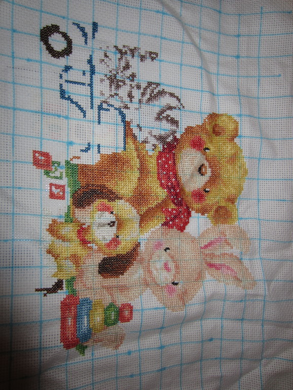 а сегодня начала еще один сапожок вышивать на 14 голубой аиде223 крестика +358 полукрестика+2%=410